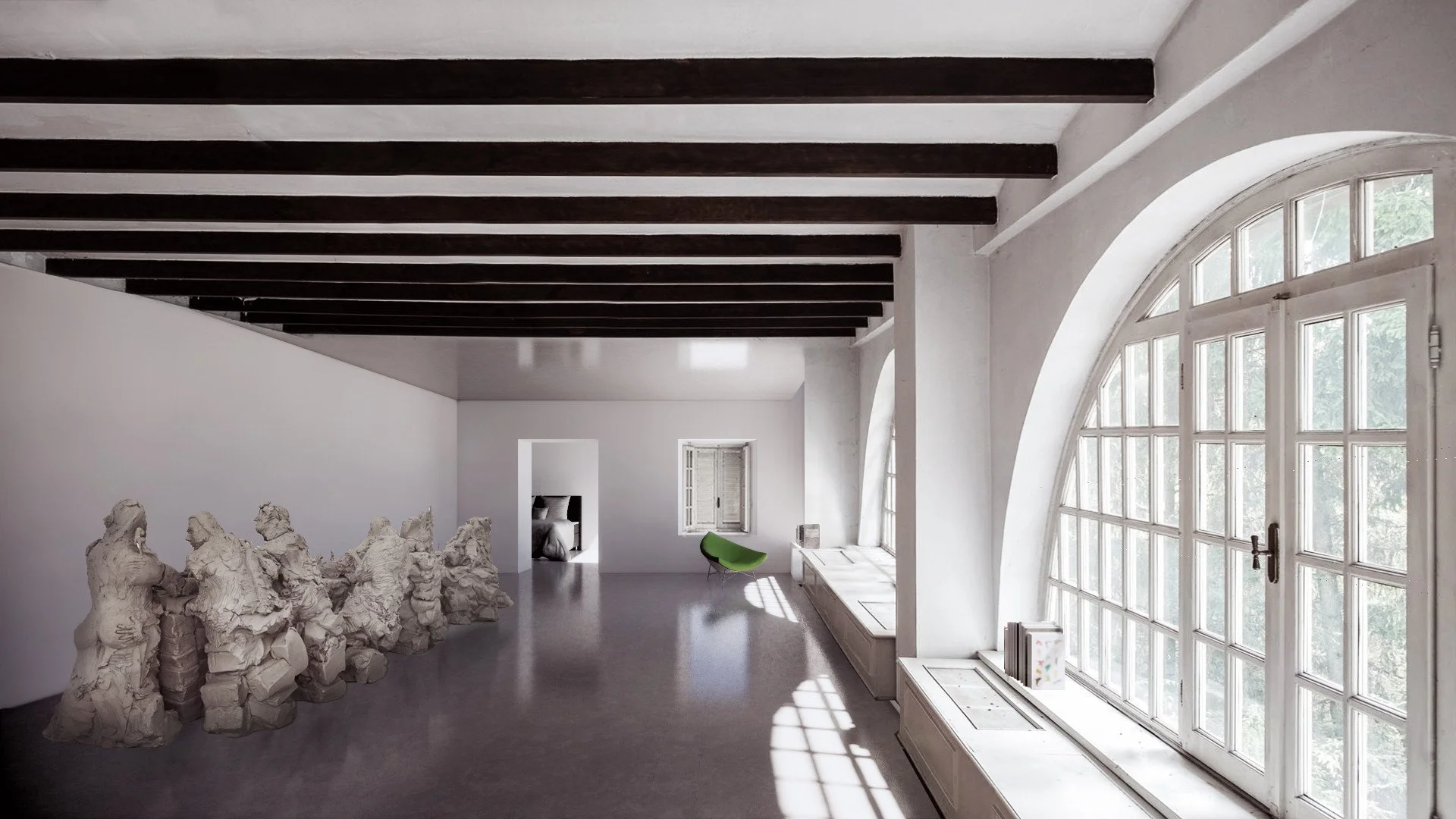An immersive section exploring the artist’s studio as a site of process, experimentation, and embodied human creativity.