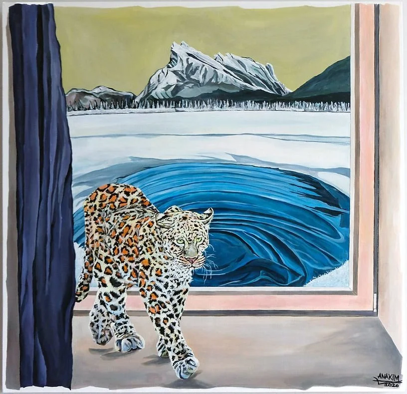 Ana Kim, Window Leopard, 2020, Acrylic on canvas, 91✕91cm