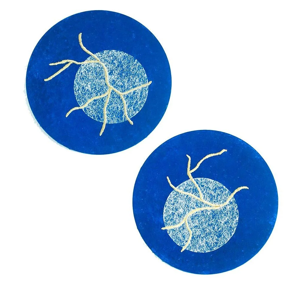 Belgian artist Stéphanie Poppe creates art that is inspired by her family’s historical background in the textile industry. Her own education in art history and her studies in art restoration furthermore influence her artistic style, which focuses on the balance between art, culture, architecture, and nature. The artworks of Poppe feature minimalist structures that consist of a wide range of materials such as paper, metallic wire, and thread. By using materials that make up the infrastructure of an urban landscape, Poppe explores the ways in which art can reflect the essentials of our everyday life. Indeed, in her work ‘Fragiles - Ombrage’, the application of synthetic material against a painted background seems to capture the intricate details and patterns of nature.